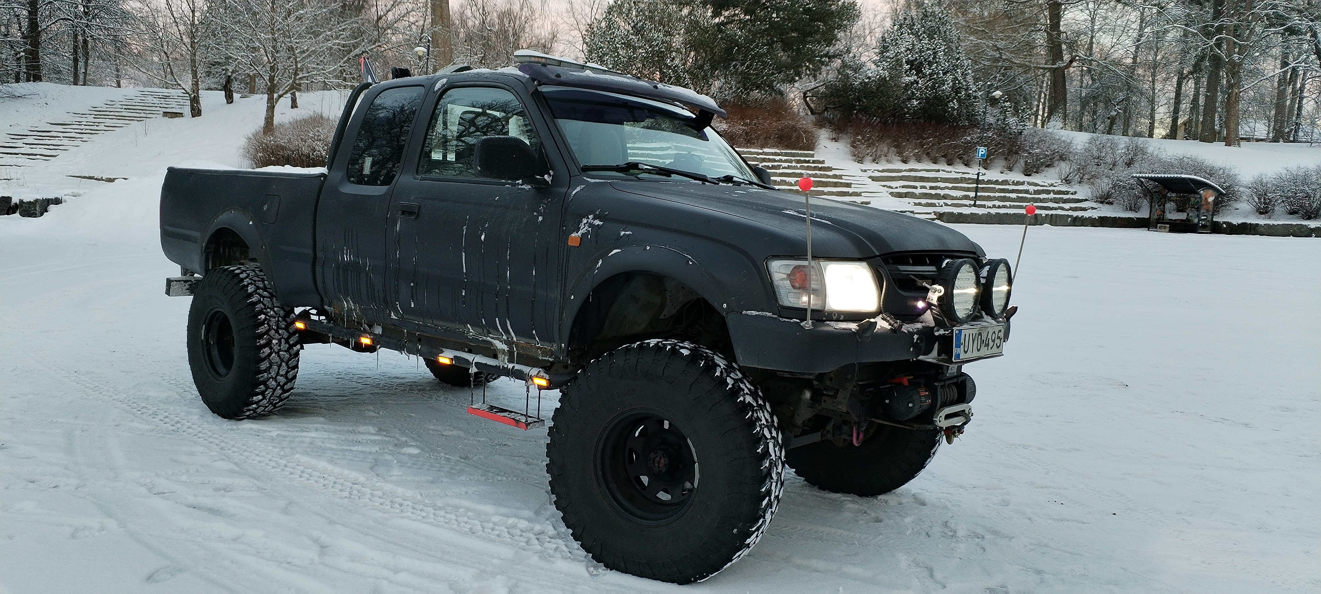 Teknisesti toimiva mutta karu Hilux! Keulalla 6000 kg vinssi ja takana nostin jolla pystyy nostamaan noin 100 kg. Molemmat langattomasti kauko-ohjattujs! 2 akkujärjestelmä. Jakohihna vaihdettu 305 tkm eli 1,5 vuotta sitten. Isot renkaat ja toiset alkuperäiset katsastusta varten. Peruutuskamera