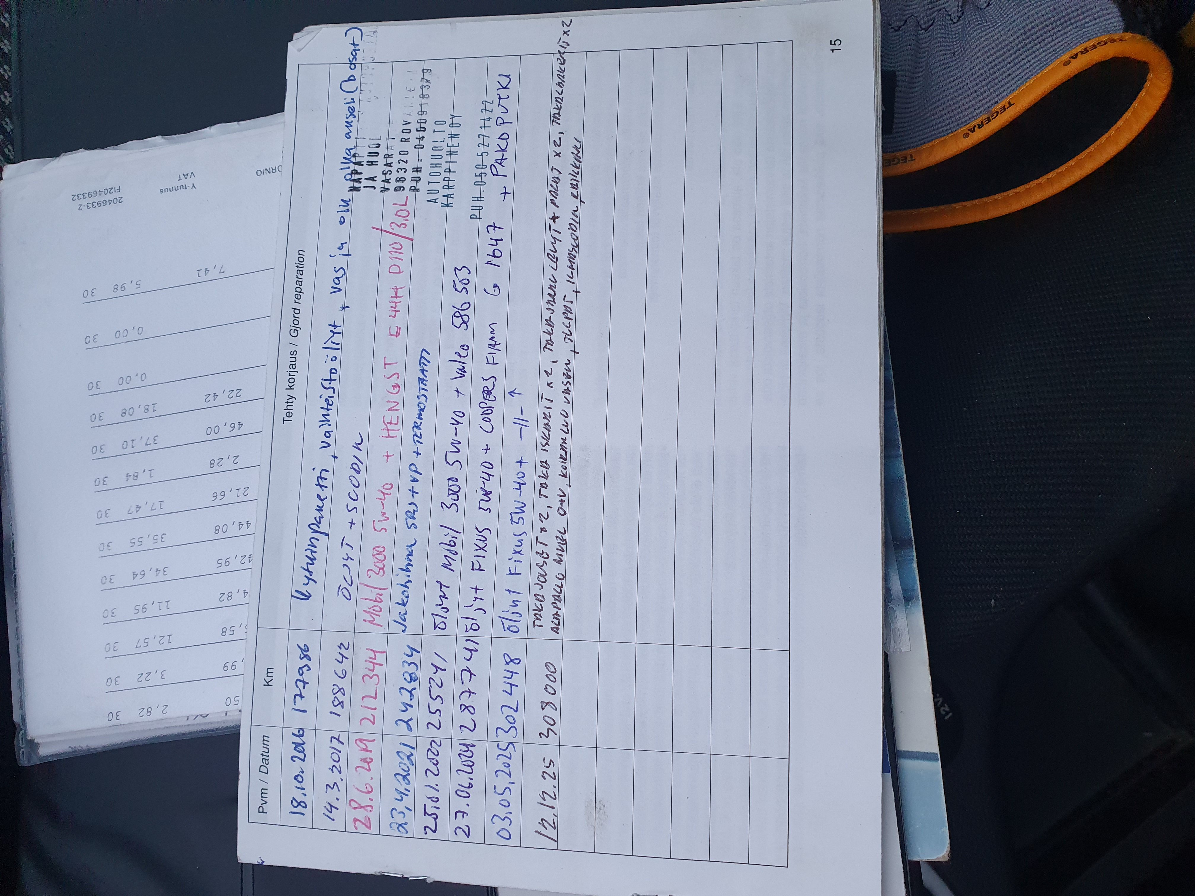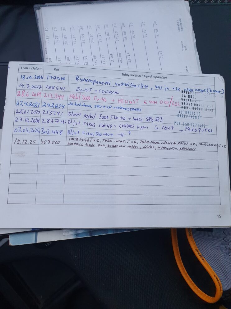 Paperinen huoltokirjaTieliikennekelpoinen
