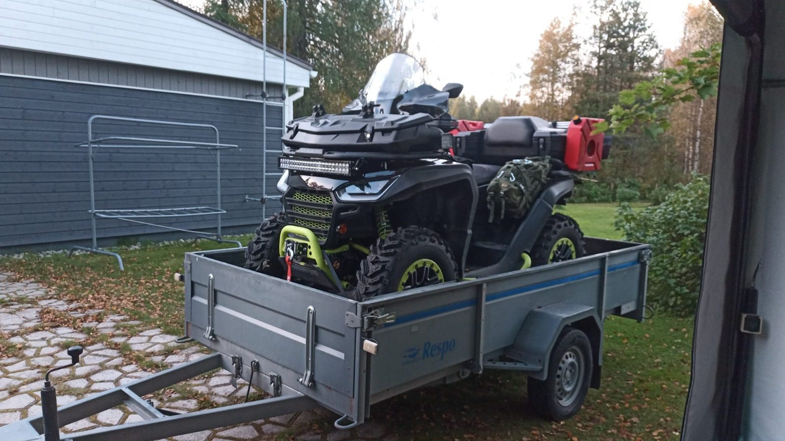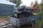 Seuraavalle käyttäjälle lähes uuden veroinen mönkijä, pidetty hyvänä. Uudet renkaat. Aura ja kärry kuuluu samaan pakettiin.