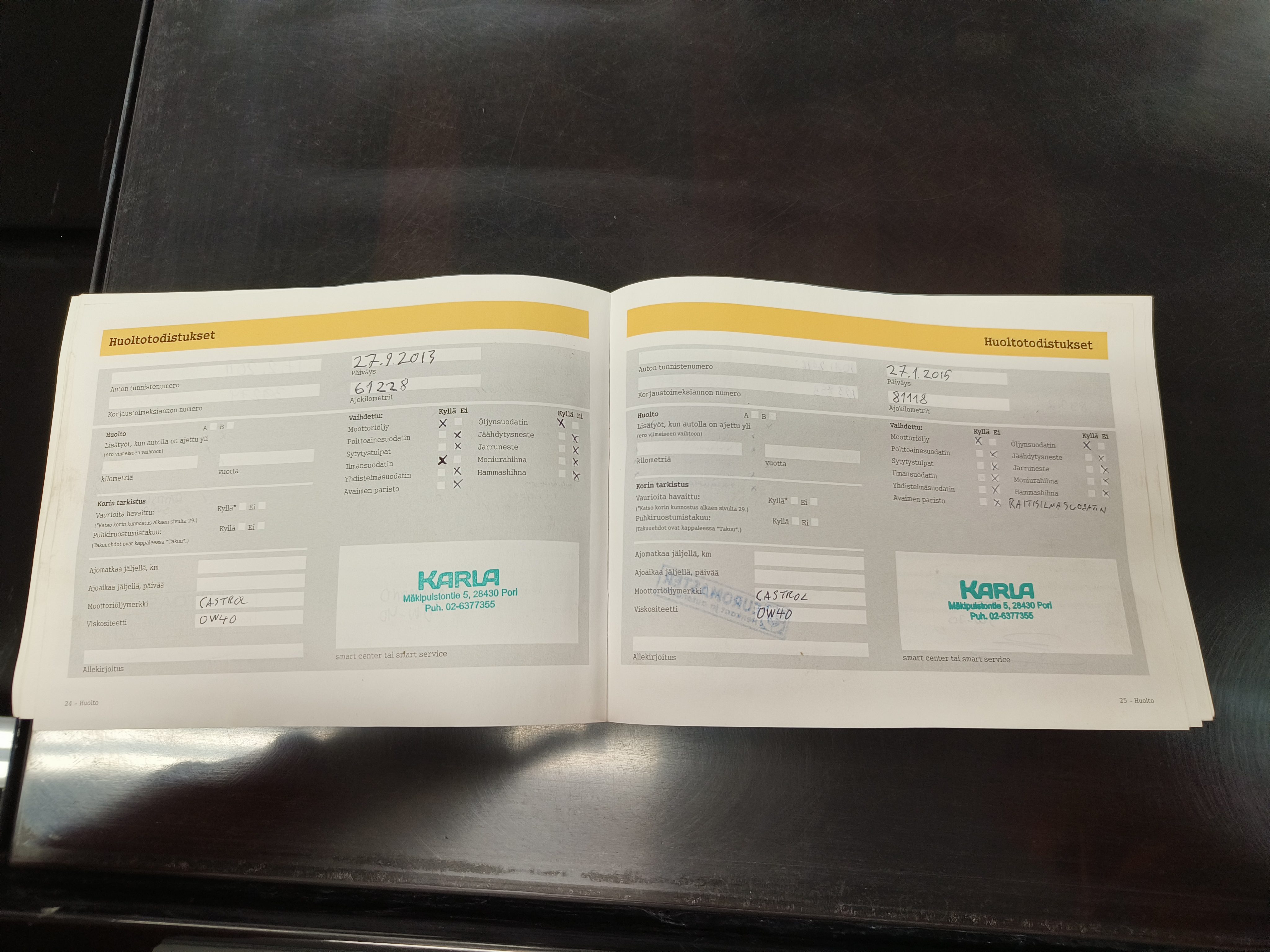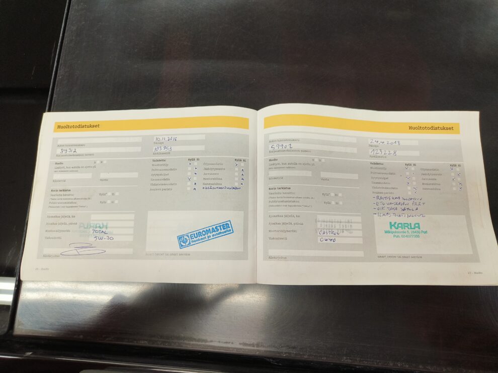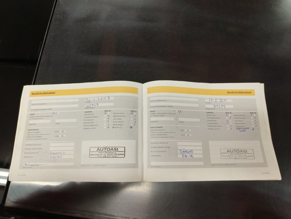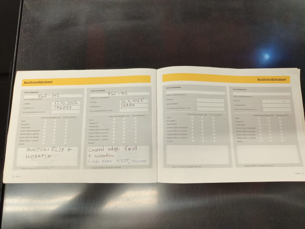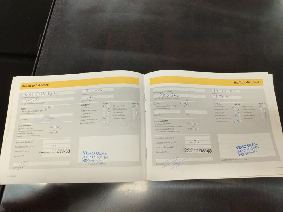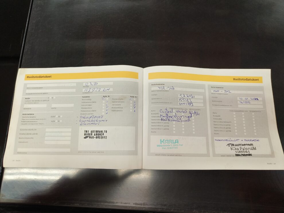 Paperinen huoltokirjaTieliikennekelpoinen